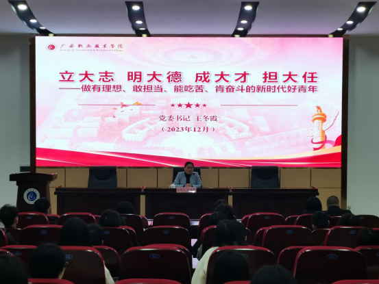 12月13日上午9点30分,校党委书记王冬霞在明德楼希贤厅为2021级电子商务1班和2班学生讲授了一堂题为“立大志、明大德、成大才、担大任”的专题思政课。校党政办、国产一区二区女内射等部分老师参加了学习。