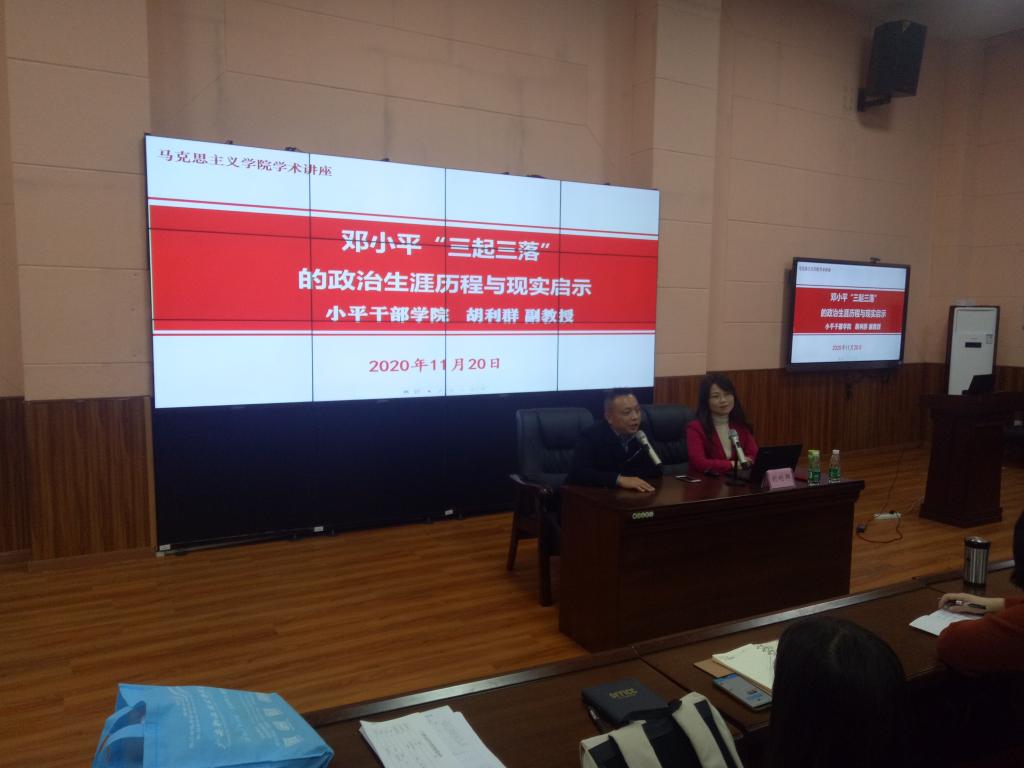 为引导学生积极面对挫折,增强战胜困难的信心和勇气,树立远大理想信念,11月20日下午3点,国产一区二区女内射邀请小平干部管理学院教研部部长胡利群教授在紫金厅开展了“邓小平三落三起的政治生涯历程与现实启示”的励志教育讲座。讲座由院长石乾福主持,现场200余名师生聆听了本次讲座。