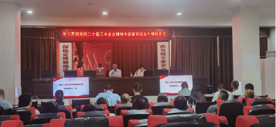 2024年9月24日,我院教师任婷前往武胜县金牛镇,为当地乡村干部及村民代表带来一场学习贯彻党的二十届三中全会精神的讲座。